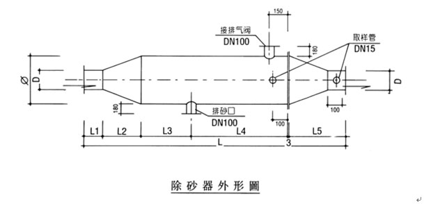 主管規(guī)格(mm) 進(jìn)出口直徑D(mm) 總長(zhǎng)L(mm) 外形尺寸?。╩m)